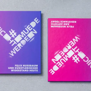 The 25th anniversary of Felix Nussbaum Haus was the occasion to consider the works of the Jewish artist in a dialog with current artistic positions within a book. Under the title #nichtmuedewerden, text contributions by nine authors were brought together and published in a 152-page, bilingual hardcover booklet. #nichtmuedewerden - Felix Nussbaum and artistic resistance today was also the title of the related exhibition, which we designed and realized.